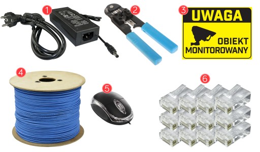 Wszystkie potrzebne wtyki i akcesoria do uruchomienia systemu monitoringu!