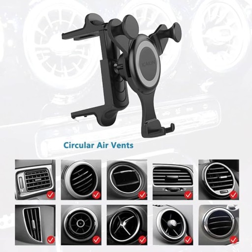 - Uchwyt na telefon do odpowietrzania samochodu to kompaktowe i bardzo przydatne rozwiązanie montażowe, które bez problemu pasuje do otworów wentylacyjnych większości pojazdów. Antypoślizgowe silikonowe klipsy pewnie i bezpiecznie utrzymują wylot powietrza.