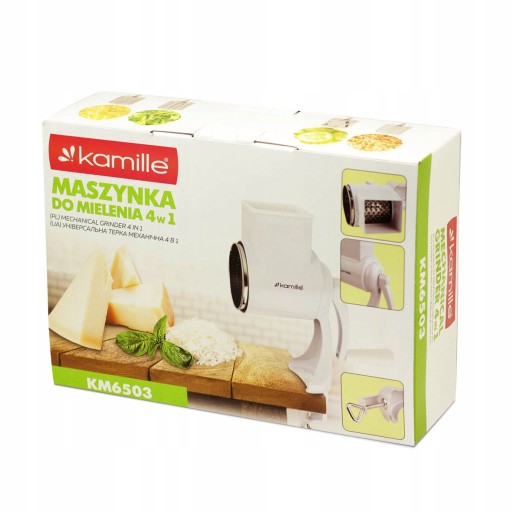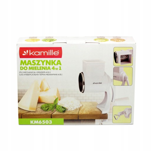 Ręczna maszynka do mielenia bakalii Kamille wykonana z wysokiej jakości stali malowanej proszkowo. Idealna do rozdrabniania orzechów, do tarcia serów, czekolady czy do przygotowywania bułki tartej. Wszystkie elementy metalowe są wykonane ze stali nierdzewnej. Posiada imadełko, gwarantujące stabilizację urządzenia przy pracy.