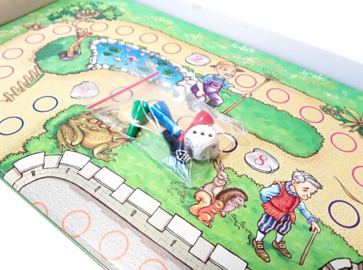 Zawartość: 1 x plansza dwustronna, 1 x kostka do gry, cztery pionki.