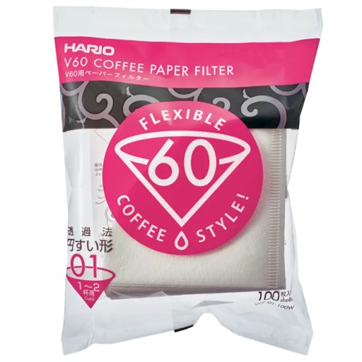 БЕЛЫЕ БУМАЖНЫЕ ФИЛЬТРЫ HARIO ДЛЯ КАПЕЛЬНОГО V60-01 100 шт.