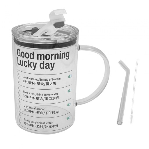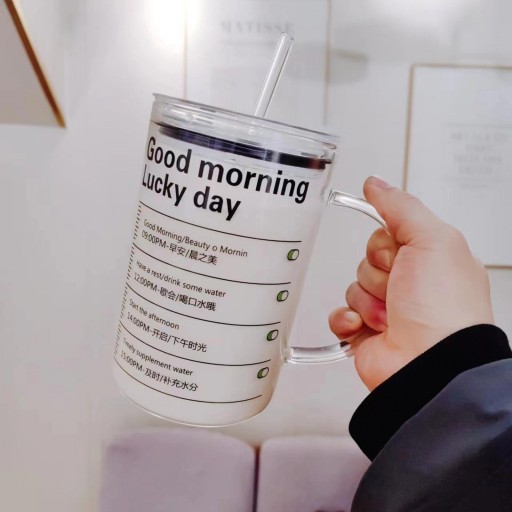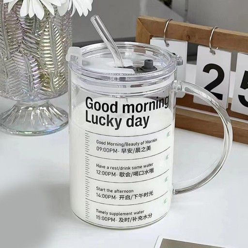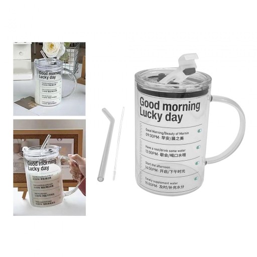Kubek szklany ze słomką 1000 ml Trwały kubek do kawy na gorące napoje Herbata Kawa Dzień dobry
