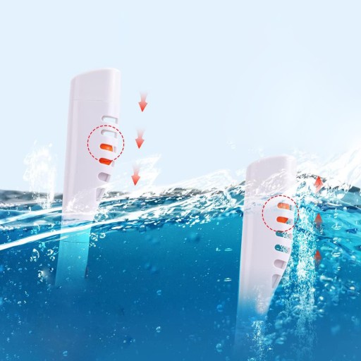 ◉ Gdy rurka oddechowa jest całkowicie zanurzona, pływająca kula unosi się i blokuje ją, aby zapobiec przedostawaniu się wody. Jeśli górna część rurki do oddychania znajduje się poza wodą, pływająca kula spada, a następnie można swobodnie oddychać.