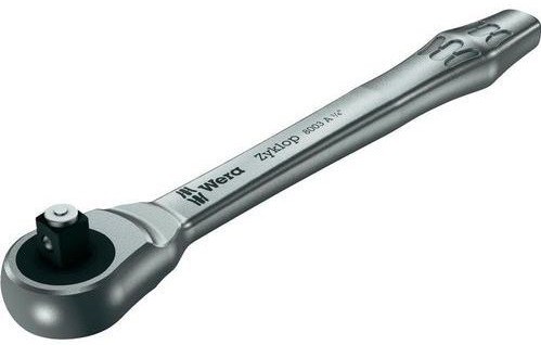 Wykonanie: grzechotka metalowa ze stali chromowo-molibdenowej, odkuwana. Z drobnym uzębieniem, z bardzo małym kątem powrotu. Bardzo wąska głowica, z długą dźwignią dla zapewnienia dobrego dojścia w miejscach trudnodostępnych i do przenoszenia dużych momentów obrotowych, ustalacz kulkowy zapewnia pewne osadzenie nasadek. Mały ciężar dla zwiększenia mobilności, duża wytrzymałość.