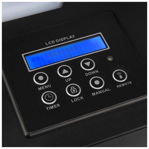 Light4Me Jet 2000 to wytwornica dymu idealna ✅ dla mobilnego DJ-a, zespołu, do klubu lub dyskoteki. Komponenty maszyny zamknięte zostały w prostopadłościennej obudowie, która umożliwia jej pracę w dwóch pozycjach. Dzięki temu słup dymu może być wydmuchiwany pionowo lub prostopadle w stosunku do podłoża. Pojemnik na płyn mieści się w korpusie obudowy. Tuż obok niego znajduje się dysza wylotowa, potrafiąca wyrzucać dym na odległość nawet 6 m! Wokół niej rozmieszczony jest układ silnych diod RGB podświetlających sztuczną mgłę. W tej części korpusu mieści się również panel sterowania wyposażony w sześć przycisków i wyświetlacz LCD. Za jego pomocą możemy ręcznie regulować m.in. takie parametry, jak objętość emisji dymu, czas przerwy pomiędzy emisjami ✅ (funkcja Timer), długość trwania wydmuchu, a także wybrać sposób pracy diod LED, czy dopasować szybkość błysków stroboskopu.