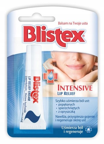Balsam do ust Blistex® Intensive Lip Relief to produkt opracowany z myślą o pielęgnacji spierzchniętych i popękanych ust, jak również ust dotkniętych problemem opryszczki. Formuła pomadki w krótkim czasie po aplikacji daje poczucie uśmierzenia bólu skóry warg.
