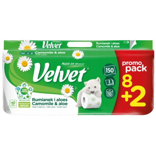 Velvet Papier Toaletowy Rumianek i Aloes 8+2 Rolki