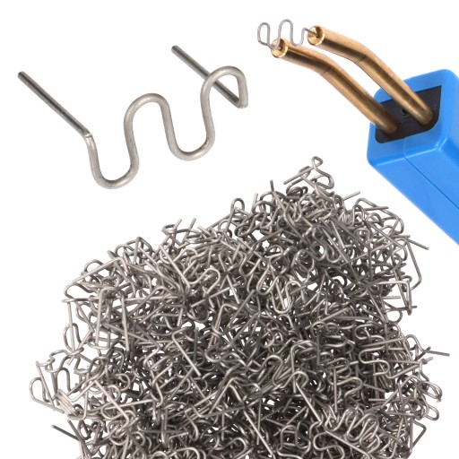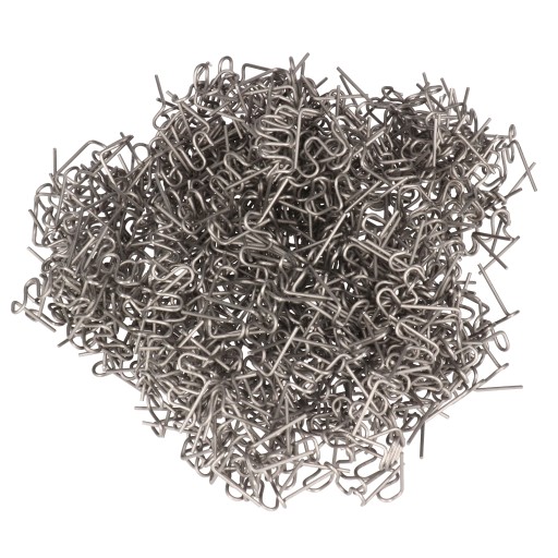 Zestaw 500 zszywek przeznaczonych do zgrzewarek, spawarek plastiku i tworzyw sztucznych.