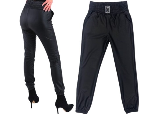 Przedmiotem aukcji są spodnie/joggery wykonane z matowej eko skóry