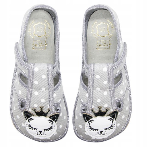 Obuwie zostało zaprojektowane w taki sposób, aby utrzymać prawidłową postawę dziecka podczas chodzenia, a także utrzymywać piętę w stabilnym położeniu. Komfortowe obuwie dziecięce wykonane z bawełnianych tkanin oraz elastycznej podeszwy. Polecane jest jako obuwie na zmianę lub po domu, lecz podczas suchych, ciepłych dni może być użytkowane także na zewnątrz.