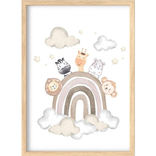 НАБОР ИЗ 3-Х ПОСТЕРОВ 30х40 НОЕВЫЙ КОВЧЕГ ЖИВОТНЫЕ ЖИВОТНЫЕ РАДУГА БЕЖЕВЫЙ ЛЕВ КОРИЧНЕВЫЙ