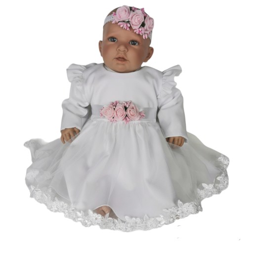 Платье для крещения, повязка на голову, размер 68.