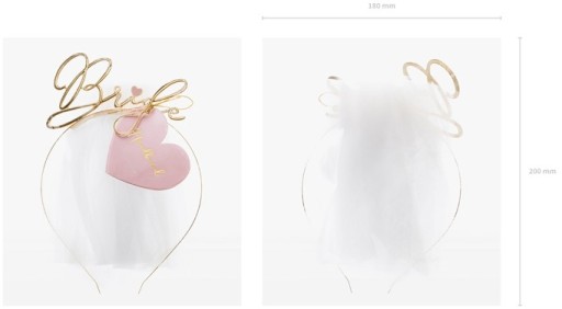 Ta elegancka metalowa opaska dla Panny Młodej jest ozdobiona napisem "Bride" w efektownym złotym kolorze. Dodatkowo, opaska posiada piękny biały welon o długości około 50 cm, co nadaje całości wyjątkowego uroku. Produkt dostarczany jest w jednym opakowaniu, zawierającym 1 sztukę tej pięknej opaski. Stwórz magiczną atmosferę na swoim ślubie i poczuj się wyjątkowo w tym wyrafinowanym dodatku dla Panny Młodej!