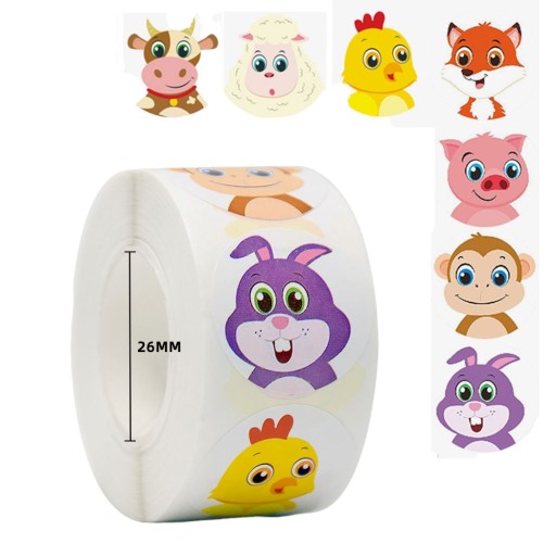 Naklejki motywacyjne 500 Szt Dla dzieci zwierzęta na rolce naklejka 25 mm