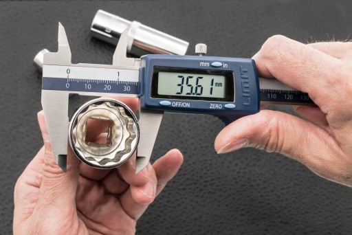 - Elektroniczna suwmiarka warsztatowa wykonana ze stali nierdzewnej.