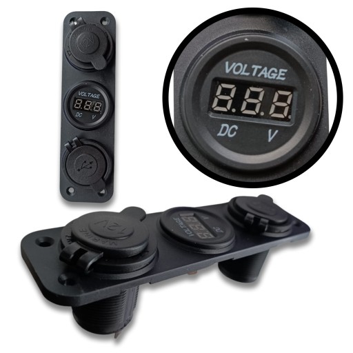 ✔️Montażowe gniazdo zapalniczki 12V z dwoma portami USB 5V oraz wbudowanym woltomierzem.