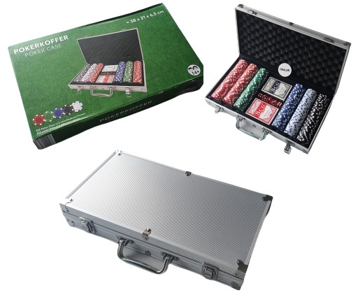 - ALUMINIOWA WALIZKA – zestaw pokera zapakowany jest w bardzo wytrzymałą walizkę, wykonaną z aluminium. Posiada ergonomiczną rączkę, która umożliwia wygodne przenoszenie i transport.