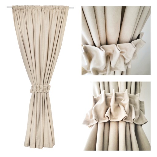 Aukcja dotyczy jednej sztuki zasłony na wymiar w zakresie od 50cm do 400cm długości z dekoracją w postaci zapięcia - opaska z marszczeniem