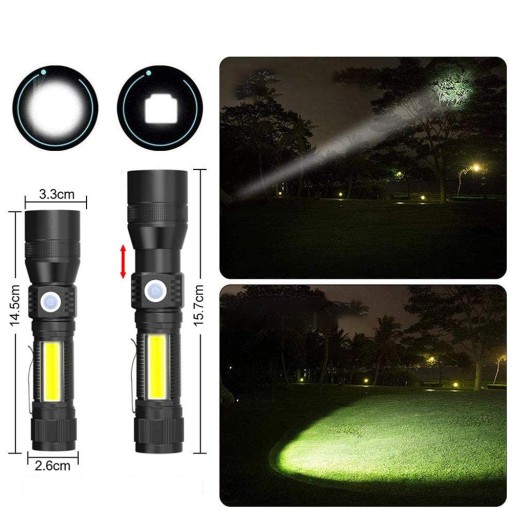 - Latarka jest wodoodporna IPX4 i wykonana z aluminium lotniczego.