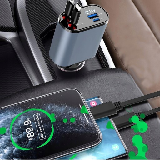 - ✔ Szybka ładowarka samochodowa USB-C do iPhone'a pozwala szybko naładować aż 4 urządzenia jednocześnie.