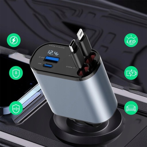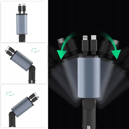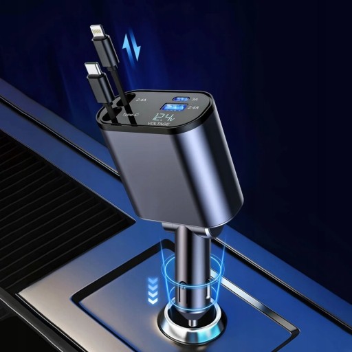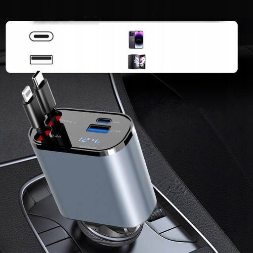 WYSUWANA ŁADOWARKA SAMOCHODOWA OBROTOWA 120 W USB-C+ OŚWIETLENIE ZAPALNICZKA