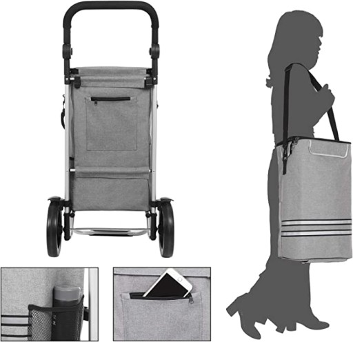 Nigdy więcej schleppingu: czy zdarza ci się wychodzić z supermarketu z kilkoma ciężkimi torbami? Połóż kres pakowaniu wszystkiego dookoła dzięki temu poręcznemu, wielofunkcyjnemu wózkowi na zakupy dostarczonemu przez songmics Wiele funkcji: tkaninową część wózka można odpiąć i przekształcić w torbę na ramię; w zestawie znajduje się komora chłodząca oraz dodatkowe kieszenie na takie rzeczy jak parasol; możliwość przymocowania do wózka sklepowego, regulowany uchwyt Szybkie mocowania: lekką aluminiową ramę wózka można rozłożyć w ciągu sekundy; wytrzymały plecak poliestrowy można łatwo złożyć dzięki zapięciom na rzepy; koła montuje się na klik, naciskając środkowe przyciski; maks. Obciążenie łożyska: 25 kg Spacerowanie, podróże, zakupy: nasz wózek towarzyszy ci na spacerze, podczas zakupów spożywczych lub podczas podróży; koła z osłoną przeciwbryzgową, odblaski dla twojego bezpieczeństwa na drodze i w nocy Co otrzymasz: wózek na zakupy z gładkimi, przesuwanymi kółkami, dużą ilością miejsca do przechowywania (35l), odpinanym plecakiem, komorą chłodzącą i lekką ramą Dane techniczne:kolor: szarymateriał: poliester 600d, rura aluminiowa, koła z pianki evarozmiar produktu: 44 x 27 x 100 cmrozmiar plecaka: 31 x 24 x 54 cmwaga: 2,8 kgmaks. Całkowite obciążenie statyczne: 25 kgmax. Nośność statyczna odpinanego plecaka: 10 kg zawartość opakowania: 1x wózek na zakupy 1x instrukcja (en, de, fr, es, it)