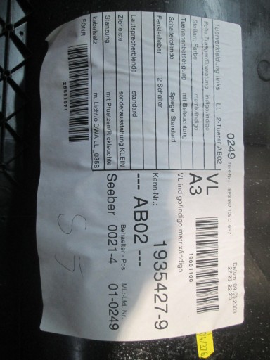 BOCZEK TAPICERKA DRZWI LEWY PRZÓD AUDI A3 8P 3D 04'