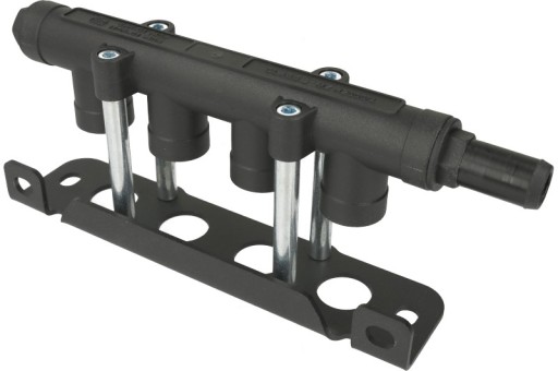 Listwa z tworzywa sztucznego z metalowymi elementami mocującymi (kątownik ustalający wtryskiwacze, cztery trzpienie dystansujące pomiędzy listwą dystrybucyjną a płaskownikiem ustalającym wtryskiwacze, cztery krótkie śruby do przykręcenia kątownika do trzpieni, cztery dłuższe śrubki do przykręcenia listwy dystrybucyjnej do trzpieni), wkręcany króciec z tworzywa sztucznego, z oringiem uszczelniającym, do zasilania listwy pod przewód gumowy o średnicy 12 milimetrów, wkręcany korek z tworzywa sztucznego z oringiem uszczelniającym.