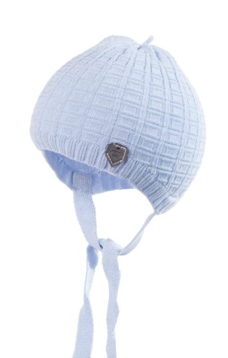 Elegancka czapka w kolorze błękitnym dla chłopca do chrztu i nie tylko. Delikatna, elastyczna, pięknie dopasuje się do małej główki bobasa. Czapeczka na okres przejściowy wiosna, jesień.
