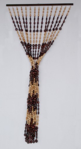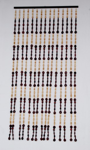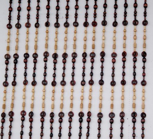 - Zasłonka wykonana z drewnianych korali nawlekanych na żyłki lub sznurki (w zależności od partii)
