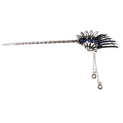 Chiński kształt piórka pałeczka do włosów zwisająca szpilka do włosów Chignon Pin frędzel niebieski