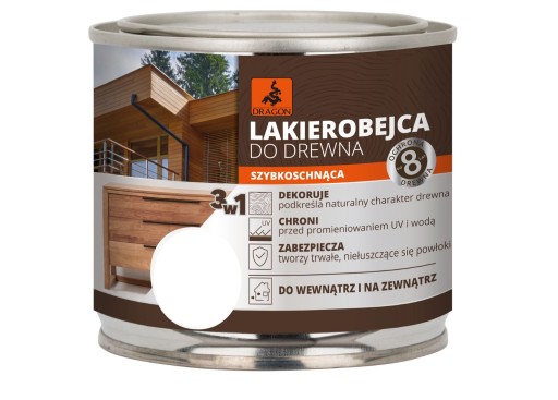 Szybkoschnąca Lakierobejca Dragon to wysokiej jakości produkt ochronno – dekoracyjny do zabezpieczenia drewna zarówno wewnątrz pomieszczeń jak i na zewnatrz. Dzięki zaawansowanej formule 3 w 1 idealnie sprawdzi się jako produkt, który impregnuje drewno, nadaje kolor i chroni na lata.