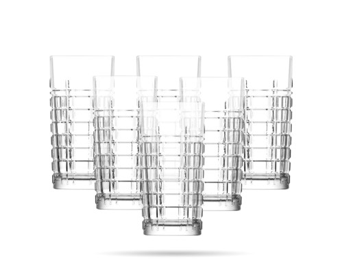 Zestaw 6 wysokich szklanek o pojemności 440 ml z serii Brit marki LAV. Oryginalne, mocne i poręczne szklanki, które świetnie sprawdzą się do podawania w nich soków, wody, jak i kolorowych drinków. Ozdobne cięcia przypominające kryształ efektownie wyeksponują zawartość szklanek. Sprawdzą się zarówno w gastronomii, jak i w codziennym, domowym użytku. Zapakowane w firmowe pudełko, mogą stanowić fajny pomysł na praktyczny prezent.