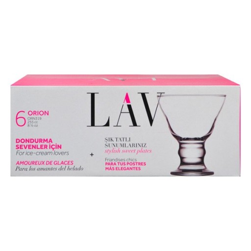 Zestaw 6 pucharków deserowych z serii Orion marki Lav. Ciekawe pucharki o pojemności 255 ml, stabilne, osadzone na eleganckiej stopie. Wykonane ze szkła hartowanego o wysokiej przejrzystości - efektownie wyeksponują serwowane w nich desery, lody czy porcje sałatek. Uniwersalne pucharki, które sprawdzą się zarówno w domu, jak i w kawiarni czy restauracji. Orion Lav to świetny pomysł na prezent.