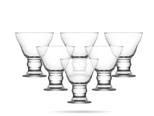 Zestaw 6 pucharków deserowych z serii Orion marki Lav. Ciekawe pucharki o pojemności 255 ml, stabilne, osadzone na eleganckiej stopie. Wykonane ze szkła hartowanego o wysokiej przejrzystości - efektownie wyeksponują serwowane w nich desery, lody czy porcje sałatek. Uniwersalne pucharki, które sprawdzą się zarówno w domu, jak i w kawiarni czy restauracji. Można myć w zmywarce. Orion Lav to świetny pomysł na prezent.