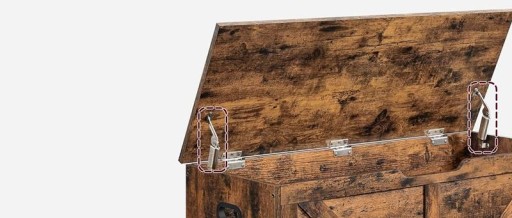 2 solidne zawiasy zapewniają, że pokrywa skrzyni może pozostać otwarta pod dowolnym kątem i delikatnie się zamknąć.