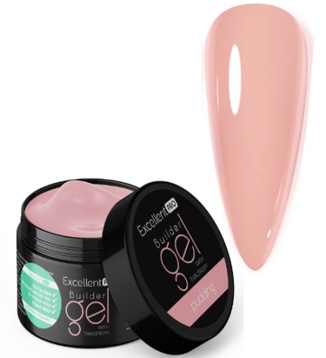 EXCELLENT PRO BUILDER GEL WITH THIXOTROPY PUDDING - jednofazowy żel kryjący na 80% w kolorze płytki paznokcia. Idealny dla osób lubiących stylizacje z mocniej kryjącymi produktami.