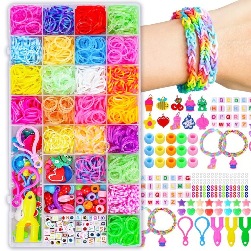 ⭐ Zestaw zawiera aż 1500 elementów + AKCESORIA co pozwoli Ci na stworzenie wielu różnych bransoletek w różnych kolorach.