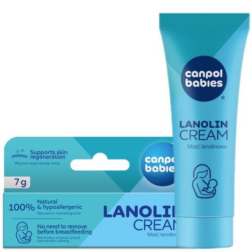 W pierwszych dniach i tygodniach karmienia piersią wiele kobiet doświadcza bólu brodawek sutkowych. Maść lanolinowa Canpol babies przynosi szybką ulgę w bólu i wspiera regenerację skóry podrażnionych brodawek sutkowych. Lanolina jest głęboko nawilżającą substancją naturalnie występującą w runie owiec. Dzięki naturalnej formule jest bardzo skuteczna – tworzy warstwę ochronną na powierzchni skóry i zapewnia nawilżenie od wewnątrz.