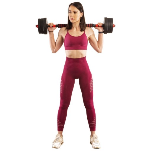 - Zestaw zawiera: Gryf krótki x 2, Łączenie dwóch gryfów x 1, Talerze 2 kg x 4, Talerze 1,5 kg x 4, Talerze 1,25 kg x 4, Zaciski x 4