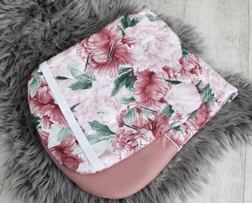 Wzory: bujne bordowe kwiaty + podnóżek brudny róż