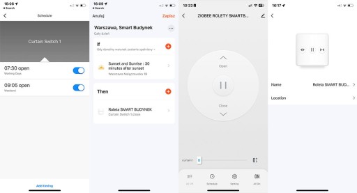 - Zamykanie/Otwieranie rolet i zasłon zdalne za pomocą aplikacji