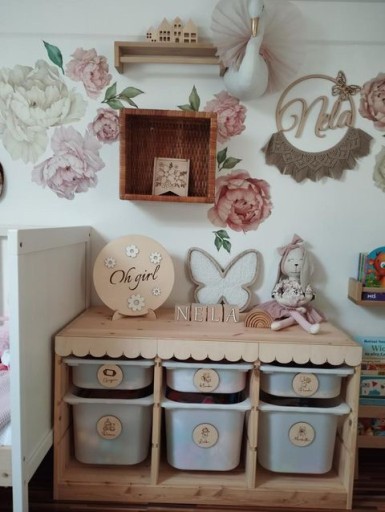 Macie w pokoiku biały trofast? Podsiadamy również w ofercie białe falbanki do białych regałów Trofast, które są w innych wymiarach.