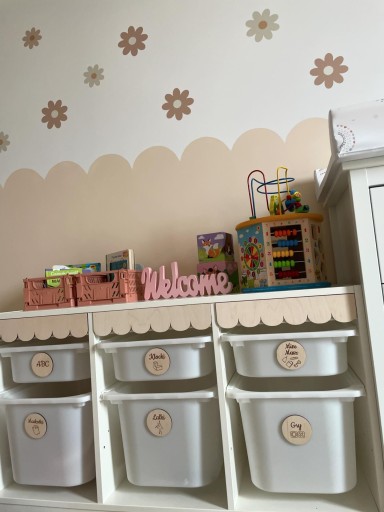 Wystarczy nakleić falbanki wzdłuż regału i cieszyć się odmienioną wersją mebla w pokoju dziecięcym. Ten niewielki dodatek odmieni pokoik i doda mu uroku.