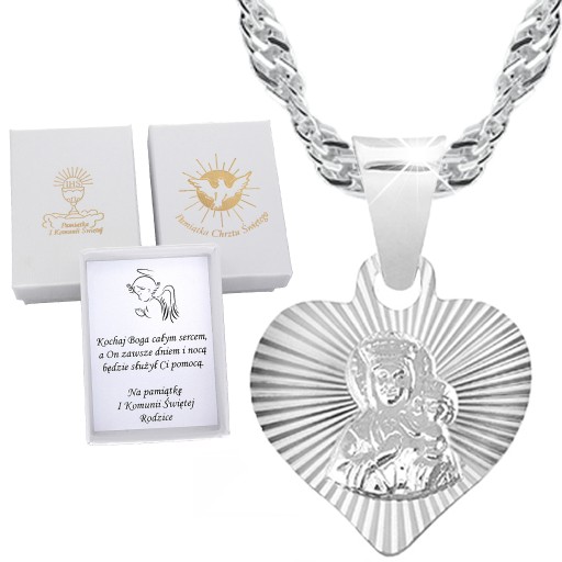 СЕРЕБРЯНАЯ ЦЕПЬ И МЕДАЛЬ СЕРДЦЕ БОЖИЕЙ МАТЕРИ ЧЕНСТОХОВСКОЙ 40см