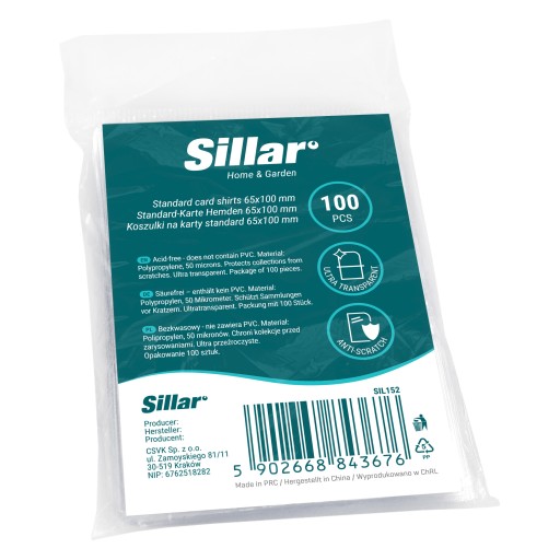 5x SILLAR KOSZULKI NA KARTY 65x100 mm 100 szt.