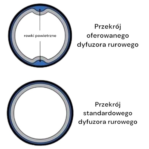 Dyfuzor rurowy służy do napowietrzania wody oraz ścieków. Innowacyjna konstrukcja zmniejszająca straty ciśnienia.