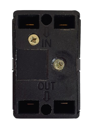 Zaciski łączymy się przy użyciu końcówek izolowanych widełkowych, połączenia są wyraźnie oznaczone na wejściu ( IN) i wyjściu ( OUT).