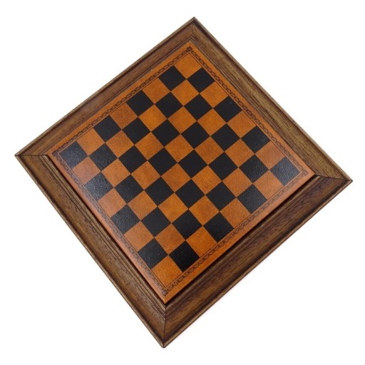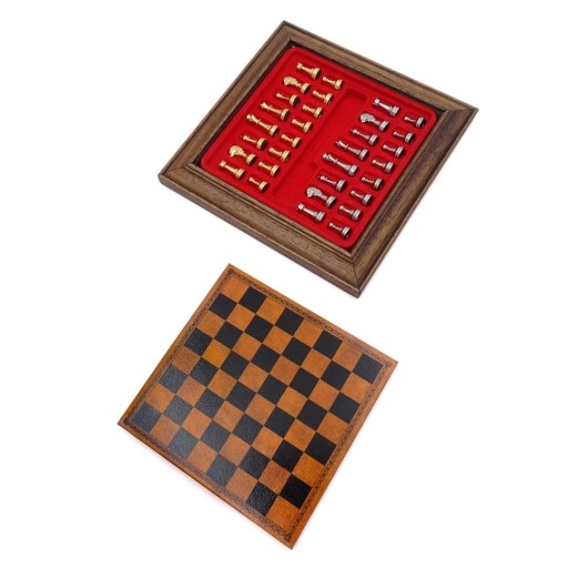 • Materiały: drewno, materiały skóropodobne (top szachownicy), figury metalowe