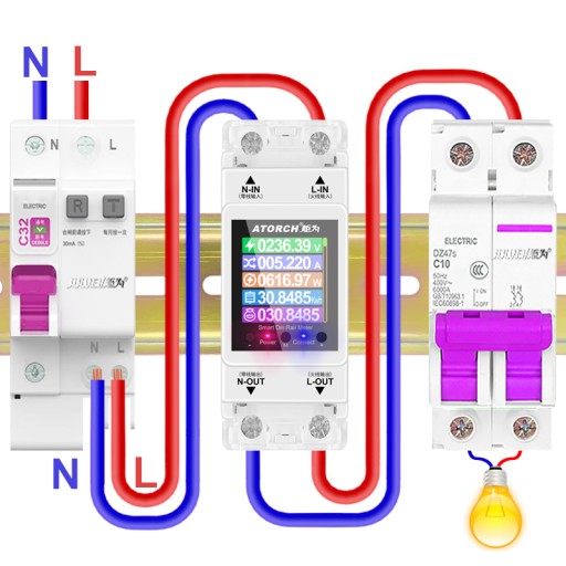 - Jednofazowy licznik energii elektrycznej - z wyświetlaczem LCD i uchwytem na szynę DIN